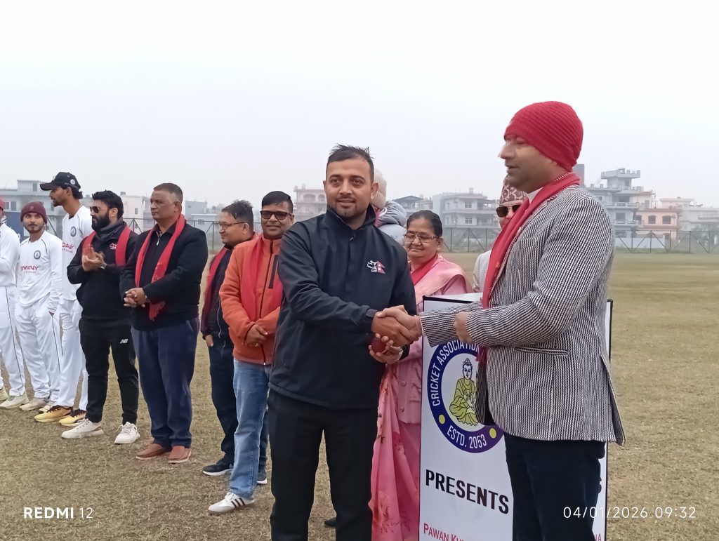 भैरहवा, २० पुस । रुपन्देही क्रिकेट संघको आयोजनामा भैरहवामा आइतबारदेखि ‘पवन कुमार सेठिया स्मृति क्रिकेट प्रतियोगिता–२०८२’ सुरु भएको छ । त्रिभुवन आर्मी क्लब ‘ए’ टीम र रुपन्देही–११ बीच प्रतिष्पर्धा हुने गरी टेष्ट, वनडे र टी–२० क्रिकेट आयोजना गरिएको हो । नेपालमै पहिलोपटक तीनवटा फम्र्याटमा दुई टीमबीच प्रतिष्पर्धा हुन लागेको यो पहिलोपटक गरिएको छ