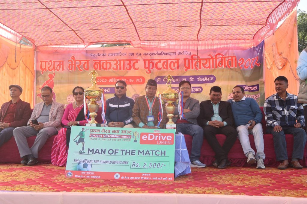आयोजना तथा सिद्धार्थनगर नगरपालिका १ नम्बर वडा कार्यालयको मुख्य प्रायोजनमा भएको प्रतियोगिता मंसिर २७ गतेसम्म सञ्चालन हुनेछ ।